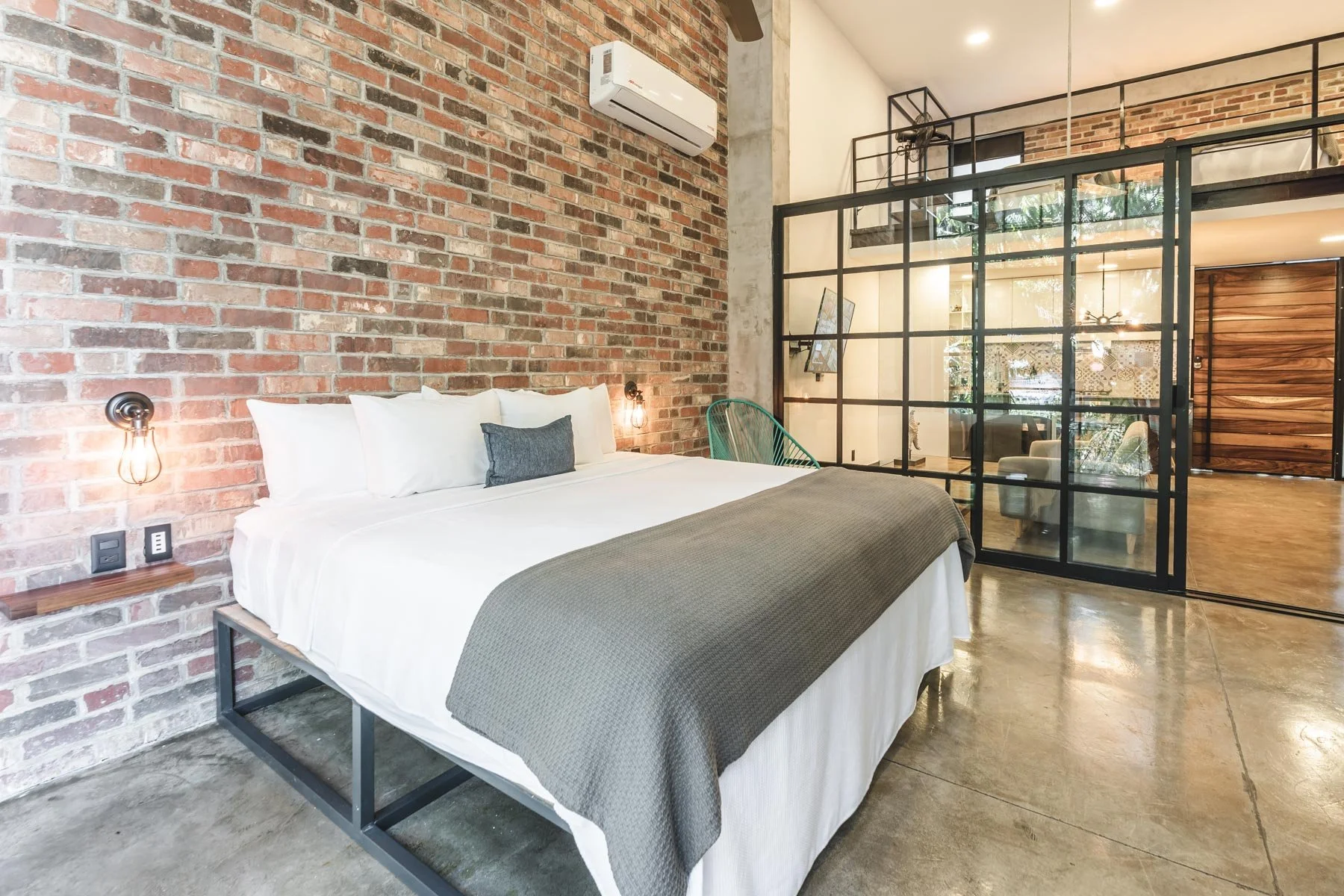 This loft has a complete kitchen, washer/dryer, king bed in the master suite and a king bed on the mezzanine. You will fall in love with the bathroom as it is oversized and features a double rain shower with an L-shaped bench!